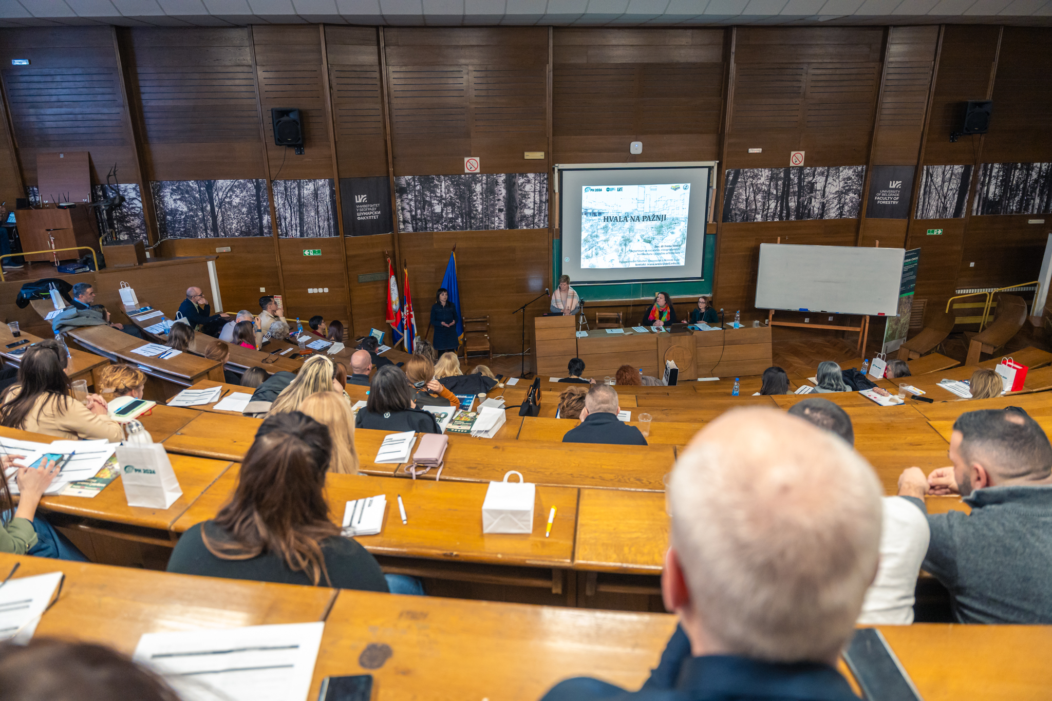 Naši predstavnici su predstavili projekat ,,Inovativni model upravljanja urbanim zelenilom kroz zaštitne konstrukcije sa edukativno-promotivnom funkcijom- model BLAGODAR“, koji kombinuje praktične primene u urbanom zelenilu sa edukativnim i promotivnim aktivnostima, uz očuvanje biodiverziteta. Prezentaciji je sledila diskusija i odgovori na pitanja publike, što je dodatno osnažilo razmenu iskustava i mišljenja.